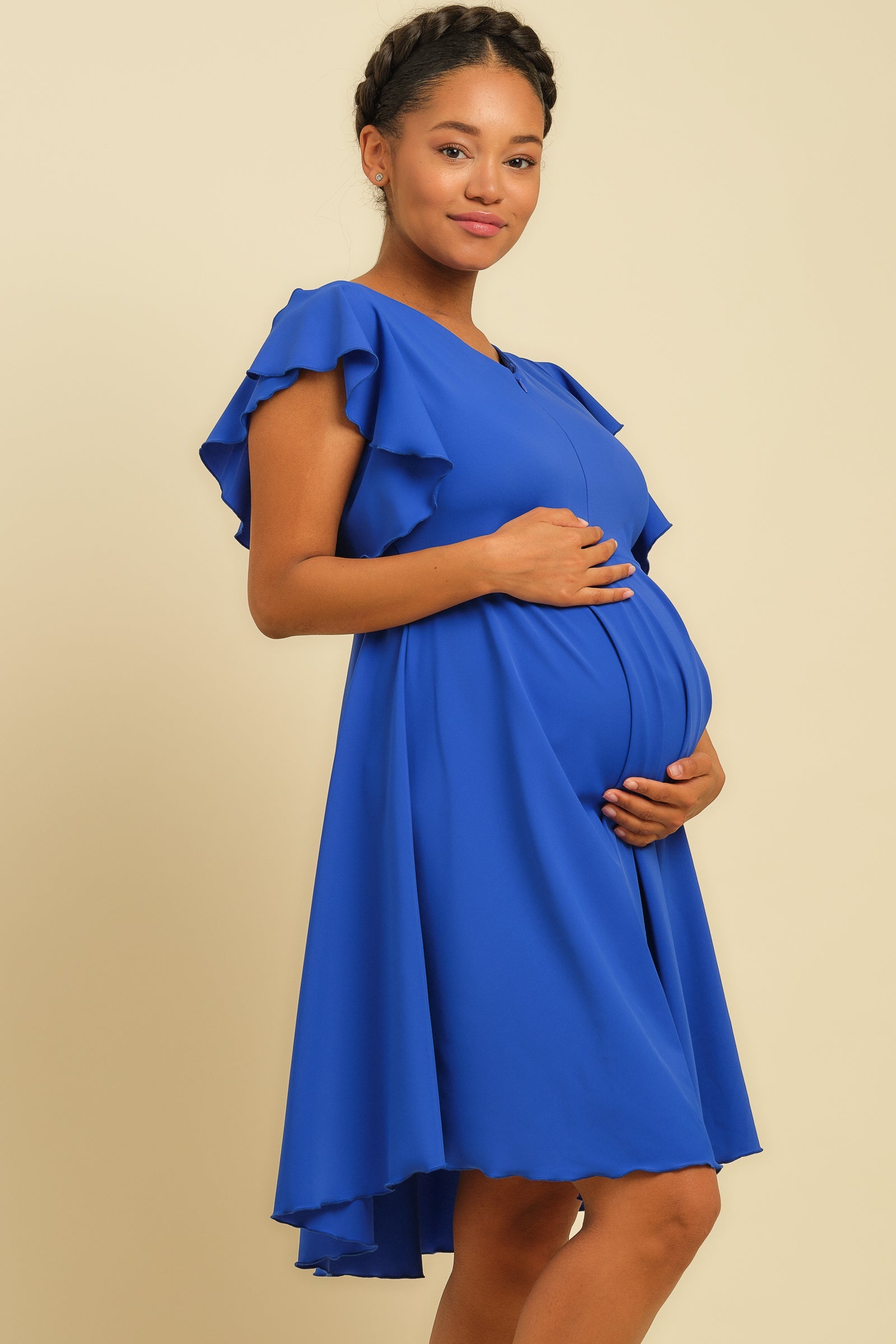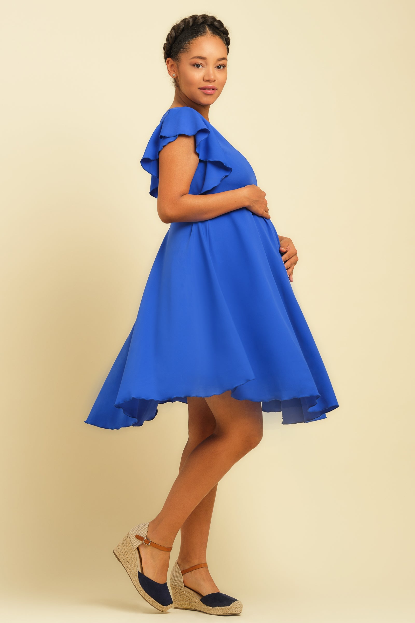 Zwiewna sukienka ciążowa i do karmienia – w kolorze królewskiego błękitu
