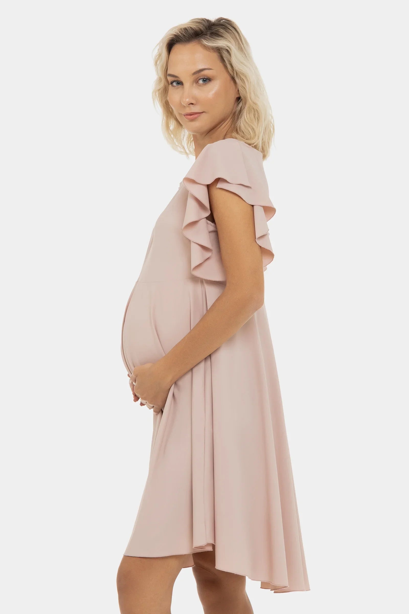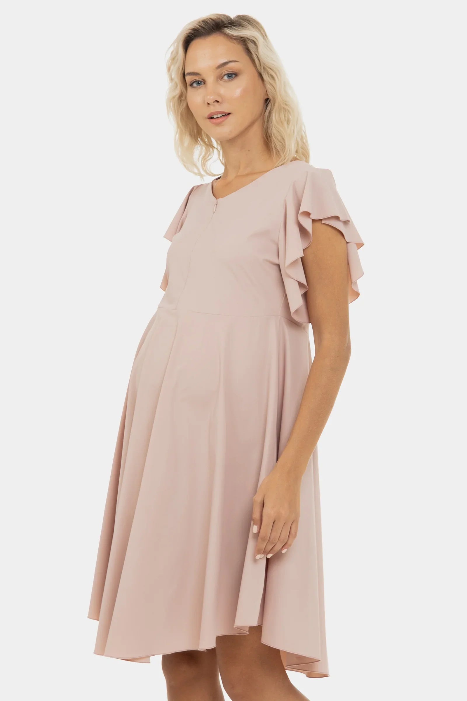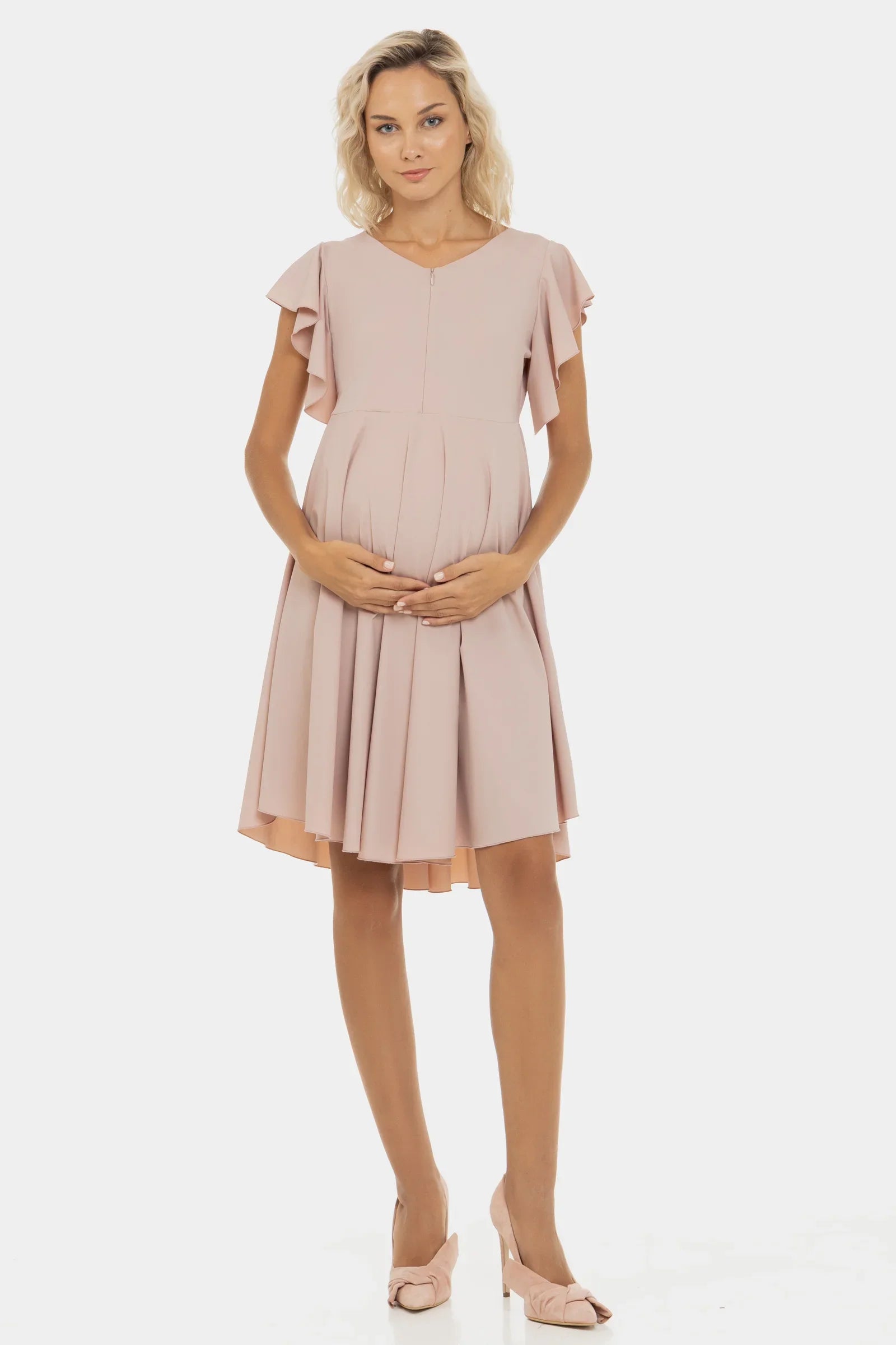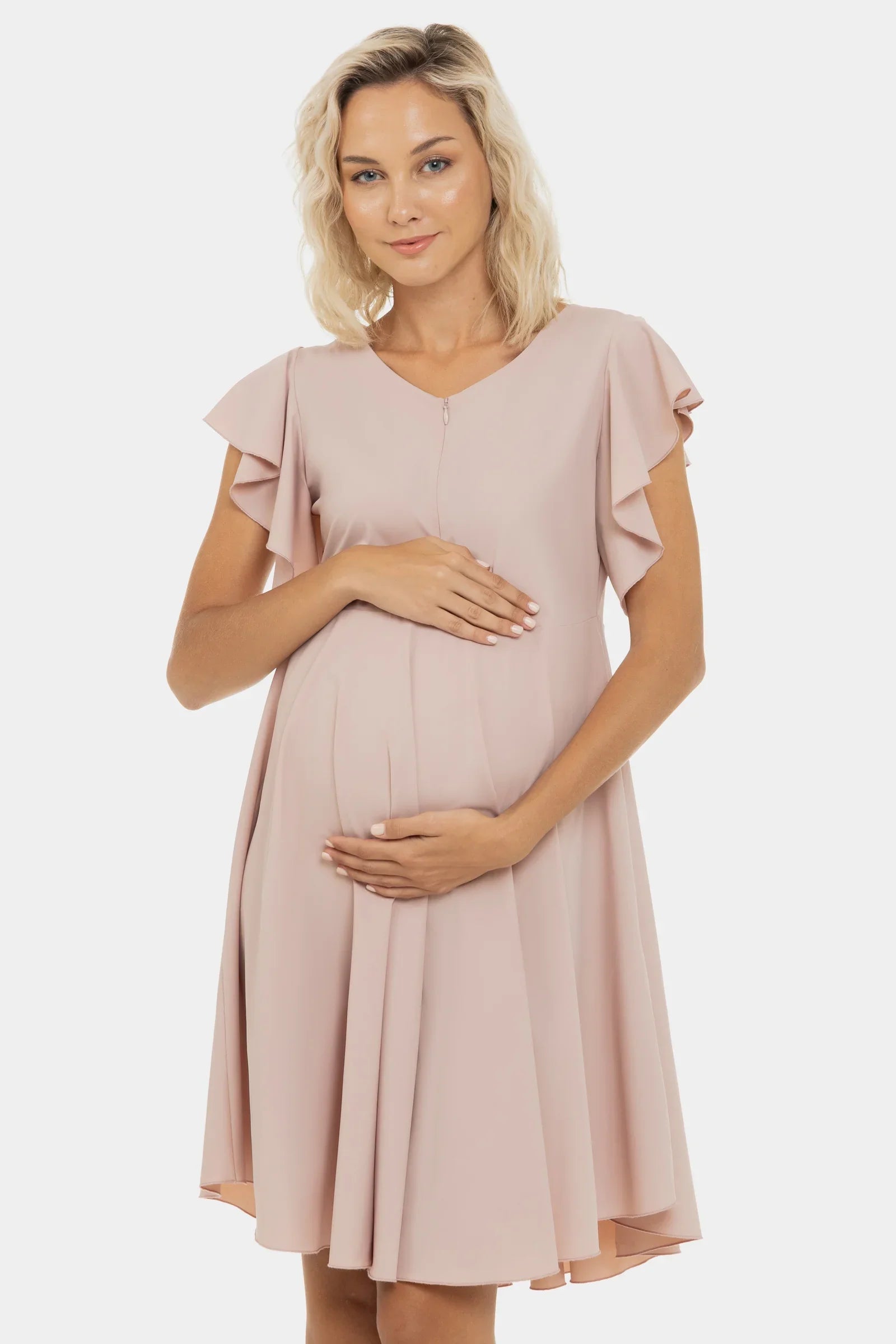 Zwiewna sukienka ciążowa i do karmienia w kolorze pudrowym