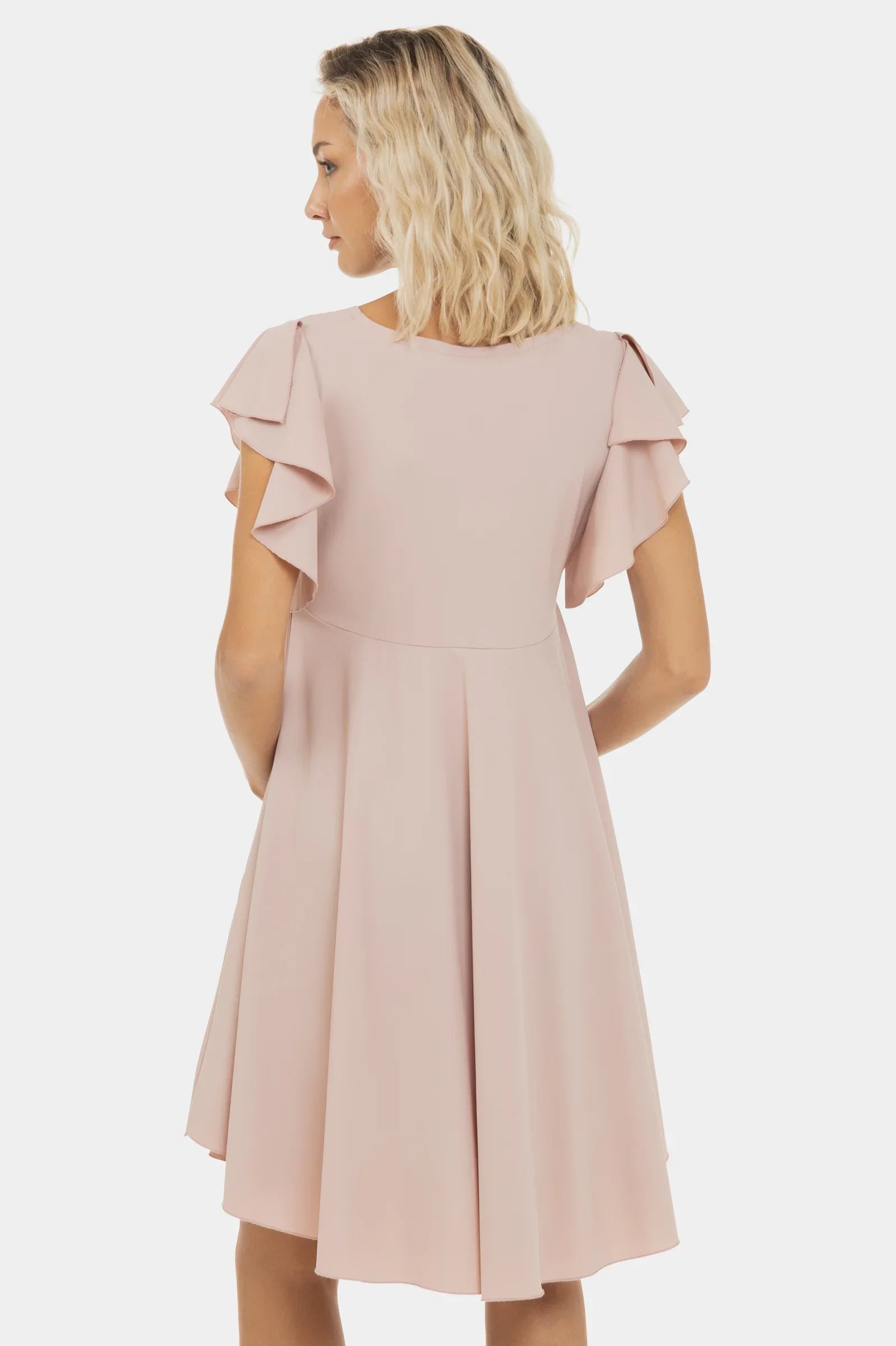 - Sukienka ciążowa i do karmienia z elastycznego materiału w kolorze pudrowym