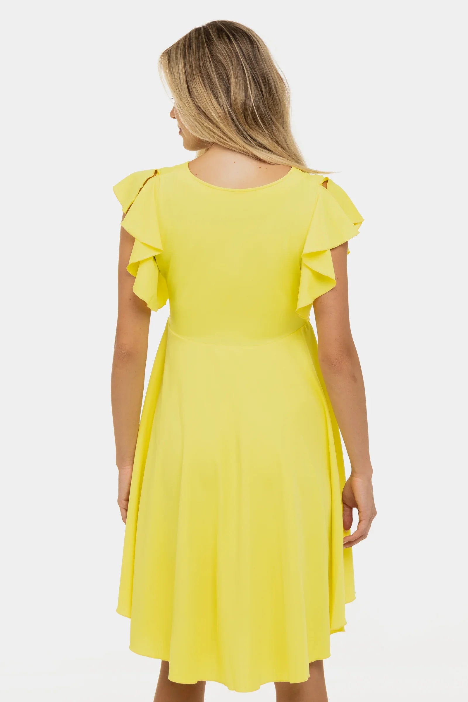 - Sukienka wykonana z elastycznego materiału w kolorze żółtym